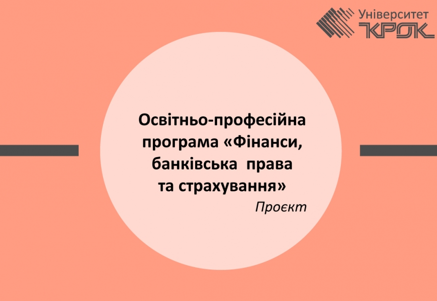 Відповідно до концепції освітньої діяльності Університету «КРОК» та з метою постійного вдосконалення змісту освітніх програм, Університет «КРОК» презентує для суспільного обговорення проєкт оновленої освітньо-професійної програми першого рівня вищої освіти (бакалавр) галузі знань 07 Управління та адміністрування спеціальності 072 Фінанси, банківська справа та страхування.