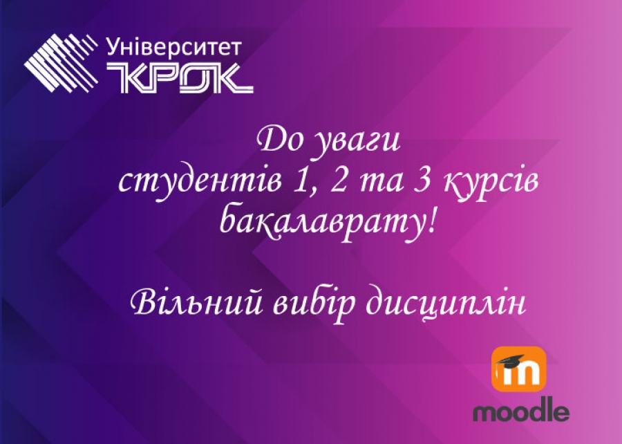 В умовах карантину усі дисципліни на наступний рік Ви маєте обрати в період з 4 по 20 травня 2020 року в системі moodle (http://dist.krok.edu.ua/).