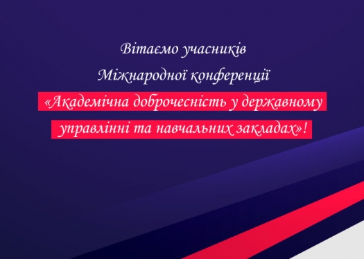 Метою конференції було обговорення актуальних питань академічної доброчесності в державному управлінні та навчальних закладах. У конференції взяли участь державні службовці різних рівнів, наукові, науково-педагогічні та педагогічні працівники закладів вищої та загальної середньої освіти.