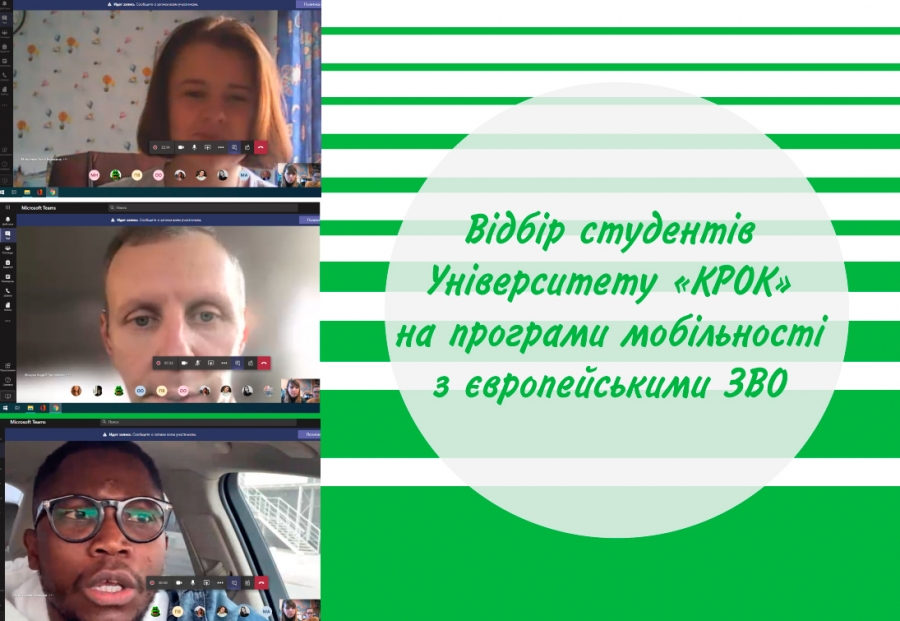 У зв’язку з пандемією учасники зустрілися з відбірковою комісією онлайн у Microsoft Teams. До складу відбіркової комісії увійшли: Лотарєв А.Г., начальник управління міжнародного співробітництва, Дробина А.О., керівник проектів та програм, Євченко М.С., менеджер з адміністративної діяльності, Павлова І.І., менеджер по роботі зі студентами Студентського офісу, Панова А., представник Студентської ради Університету.