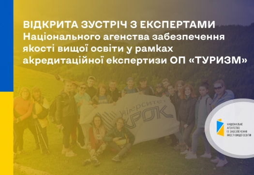 Запрошуємо всіх охочих долучитись до відкритої зустрічі з експертами Національного агенства забезпечення якості вищої освіти у рамках акредитаційної експертизи ОПП Туризм.