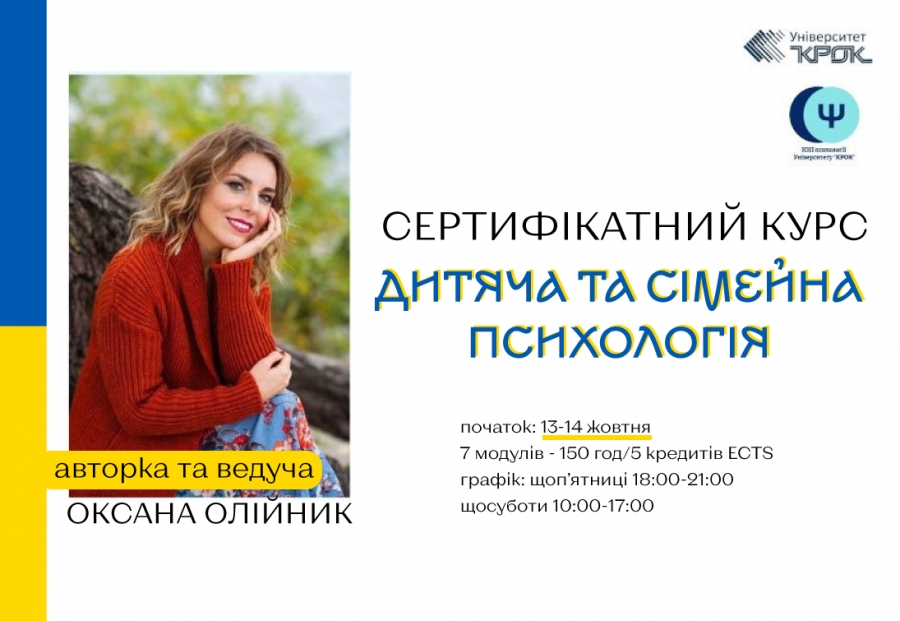 Автор і ведуча курсу: Оксана Олійник - дитячий та сімейний психолог, арт-терапевт, засновник та ведуча сімейних творчих таборів, автор тренінгів для батьків та підлітків.