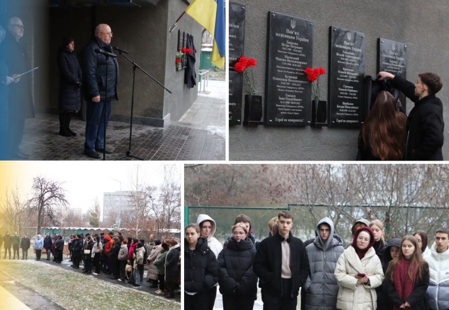 Кульмінацією мітингу стало відкриття меморіальної дошки на честь двох випускників Університету: