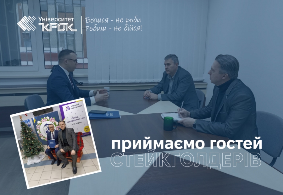 Центр розвитку кар'єри організував зустріч нового стейкголдера ПуАТ "КБ "АКОРДБАНК" з кафедрою національної економіки та фінансів в Університеті «КРОК», в якій брали участь директор ЦРК Буханець Олег, завідувач кафедри Румик Ігор та начальник управління розвитку персоналу банку Петрівський Олексій.
