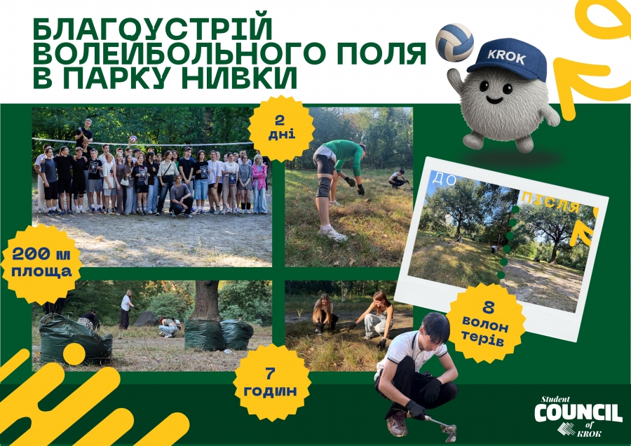 Протягом семи годин протягом двох днів спільної роботи учасники прибрали рослинність та підготували ігрову зону для волейбольного турніру, адже за гарної теплої погоди, свіжого повітря та відсутності обмеження висоти спричиненого низькою стелею спортивної зали така локація стала ідеальним альтернативним місцем проведення заходу.
