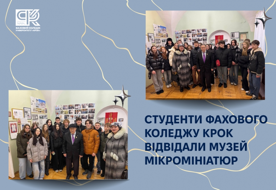 20 листопада 2025 року в рамках традиційного Happy Day (який у Фаховому коледжі Університету «КРОК» проходить раз на півроку) студенти 1-го курсу груп МЕН-25-1 та МЕН-25-2 разом із викладачем Кузьменко Ольгою Юріївною відвідали унікальний музей мікромініатюр Миколи Сядристого на території Києво-Печерської лаври.