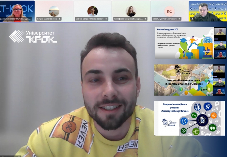 У своєму виступі Сергій Сергієнко розповів про діяльність інноваційної екосистеми Sikorsky Challenge Ukraine, її місію, міжнародні партнерства та роль у створенні стартапів. Експерт поділився власним досвідом роботи над інноваційними проєктами, пояснив принципи формування інноваційного продукту, структуру стартап-екосистеми, особливості інкубації та акселерації команд, а також механізми взаємодії з інвесторами та виробниками. Значну увагу було приділено практичним аспектам проєктного менеджменту: використанню сучасних цифрових інструментів; формуванню бізнес-планів; маркетингових стратегій; підготовці презентацій для інвесторів та дослідженню ринку.
