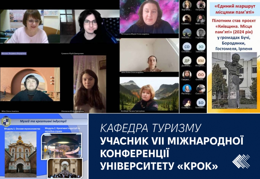 Із науковими доповідями виступили здобувачі вищої освіти 3-4 курсів освітньої програми «Туризм» Університету «КРОК»: Юрій Єрмаков («Нематеріальна культурна спадщина як чинник сталого розвитку подієвого туризму в дестинації», науковий керівник і співавтор – Олена Міхо, доцент кафедри туризму), Кирило Дьякону («Управління туризмом в Україні на прикладі діяльності Державного агенства розвитку туризму України», науковий керівник і співавтор – Тетяна Сокол, к.пед.н., доцент), Вікторія Токовая («Напрями розвитку туристичного бізнесу в умовах воєнного стану», науковий керівник і співавтор – Світлана Гаврилюк, к.е.н., доцент) та ін. 26 учасників конференції підготували тези, у т.ч. у співавторстві, які були опубліковані.
