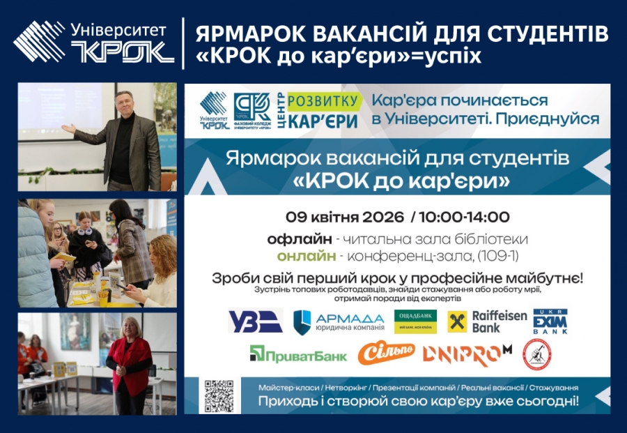 Ярмарок вакансій «КРОК до кар’єри» підтвердив важливість співпраці між закладом вищої освіти та роботодавцями у підготовці конкурентоспроможних фахівців і формуванні усвідомленої кар’єрної траєкторії студентів.