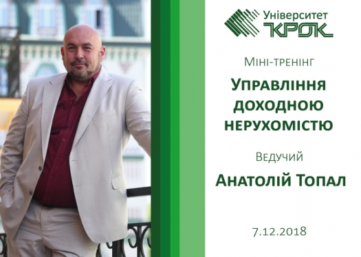 7 грудня 2018 року з 14:30 до 16:30 у читальній залі бібліотеки Університету «КРОК» лабораторія управління майном та капіталом кафедри теоретичної та прикладної економіки нашого Університету проводитиме міні-тренінг «Управління доходною нерухомістю».