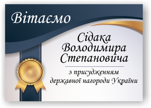 19 травня 2018 року Указом Президента України П. Порошенка «Про відзначення державними нагородами України» нагороджено орденом «За заслуги» І ступеня Володимира Степановича Сідака за вагомий особистий внесок у розвиток вітчизняної науки, зміцнення науково-технічного потенціалу України, багаторічну сумлінну працю та високий професіоналізм.