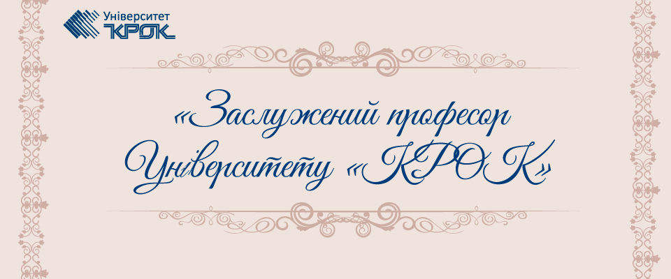 Почесне звання «Заслужений професор Університету «КРОК» встановлюється відповідно до п. 3.2.24 Статуту Вищого навчального закладу «Університет економіки та права «КРОК» і є визнанням особливих заслуг штатних професорів у розвитку освіти й науки, підготовці висококваліфікованих фахівців, становленні та розвитку Університету.