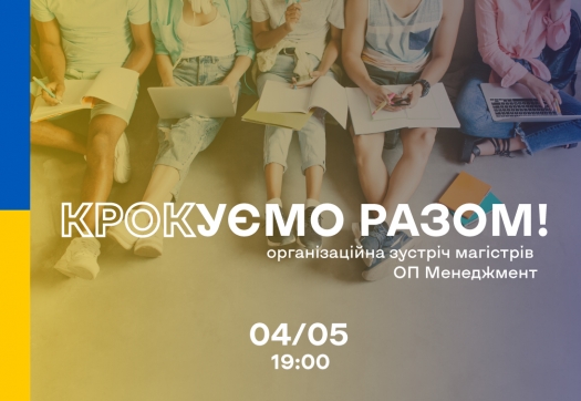 Шановні магістри І-го курсу, спеціальність «Менеджмент», ОП «Менеджмент організацій» (весняний набір) команда кафедри технологій Університету «КРОК» запрошує Вас на організаційну зістріч «КРОКУЄМО РАЗОМ!».