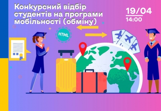 19 квітня 2023 року о 14:00 в Microsoft Teams відбудеться КОНКУРСНИЙ відбір студентів Університету «КРОК» на програми мобільності (обміну).
